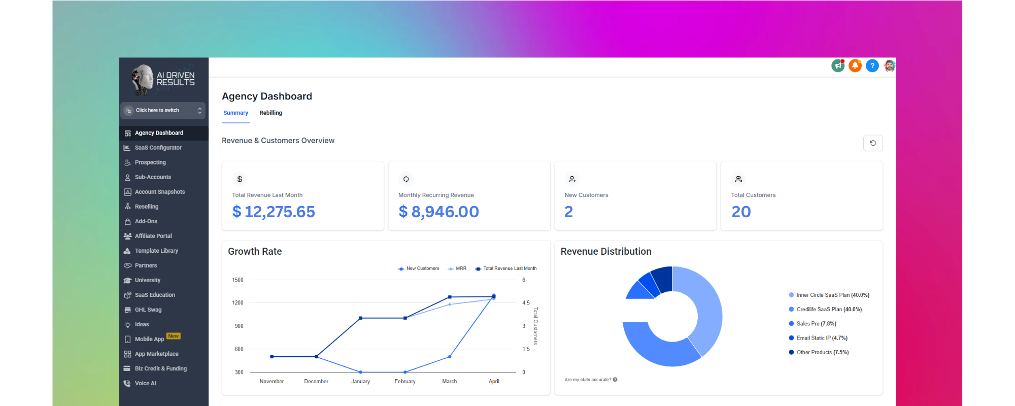 When you sign up as a SaaSPRENEUR, you'll have access to everything you need to launch your new white-label SaaS business. In addition to the monthly subscription revenue you'll receive from your customers, you'll also make money every time they send & receive emails, text messages, and when they use AI!