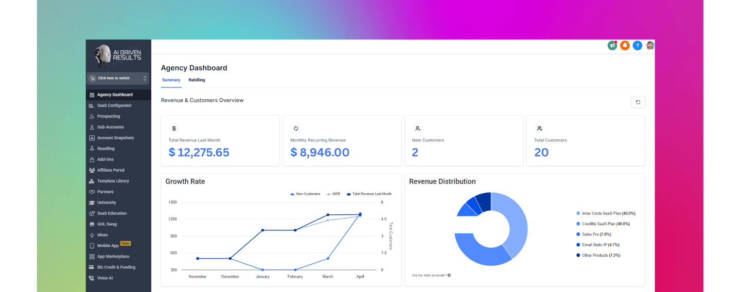 SaaSPRENEURs generate millions of dollars per month by white-labeling and reselling HighLevel as their own software. Start your journey as a SaaSPRENEUR today!